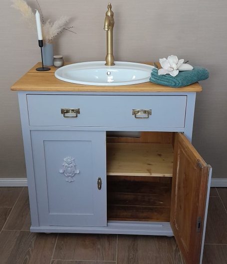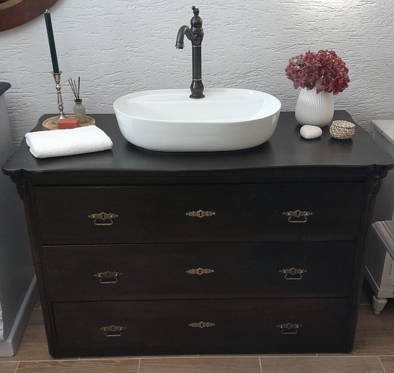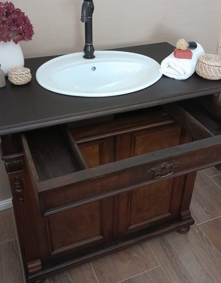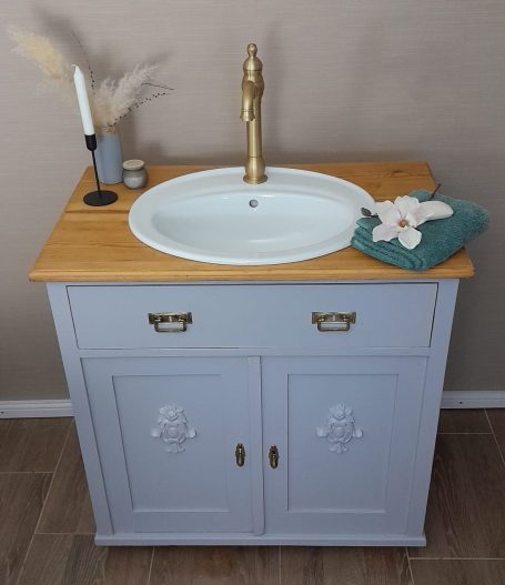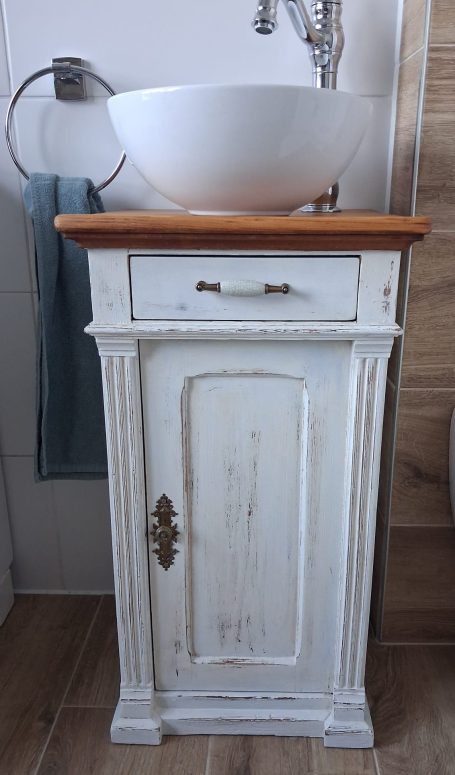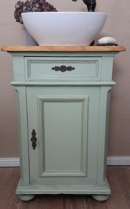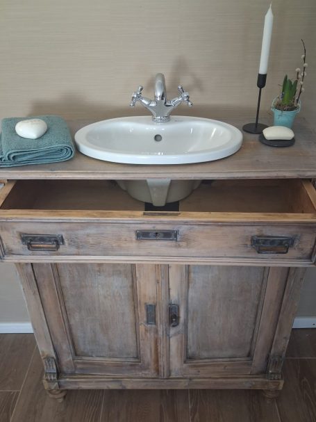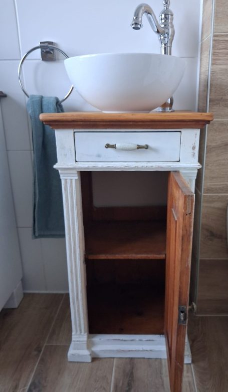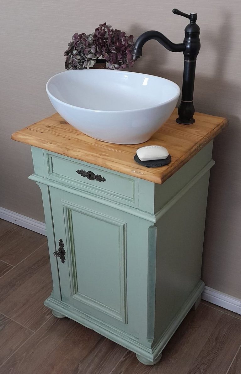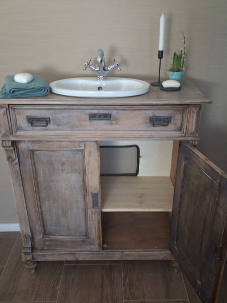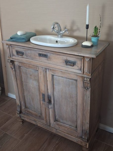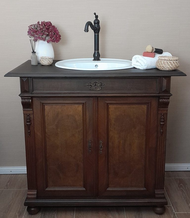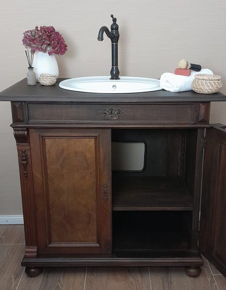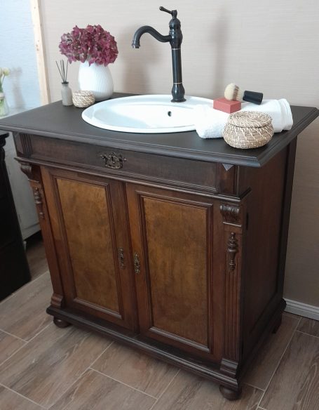 Wer ein besonders nostalgisches Möbelstück als Waschtisch für sein Badezimmer sucht, hat hiermit eine Interessante Alternative gefunden.
