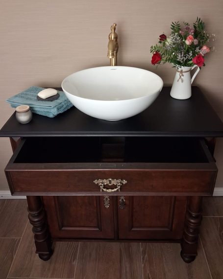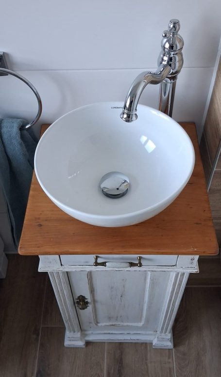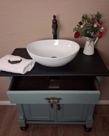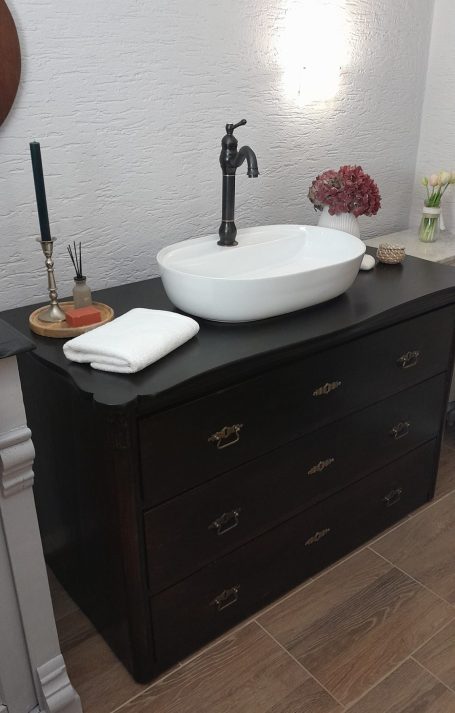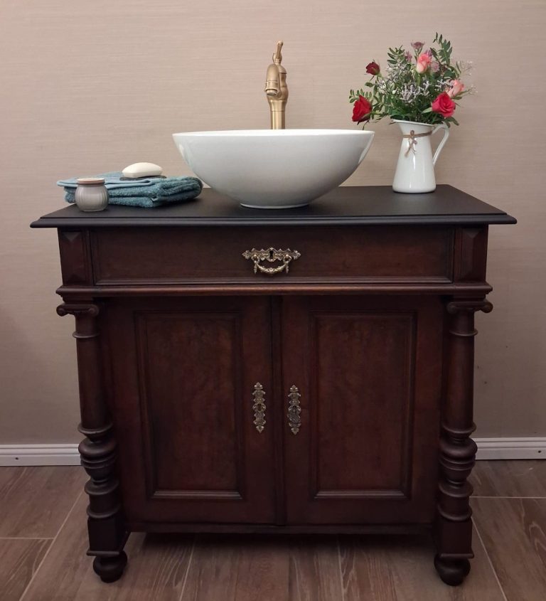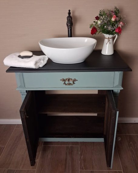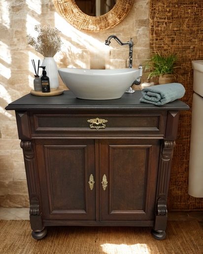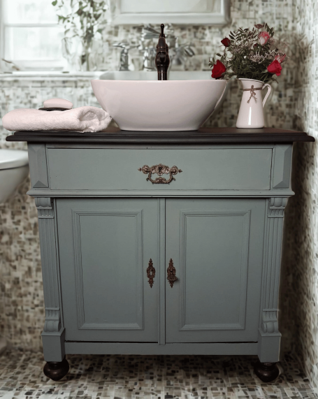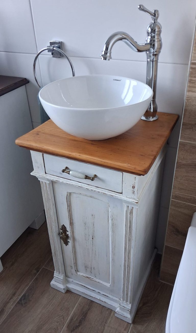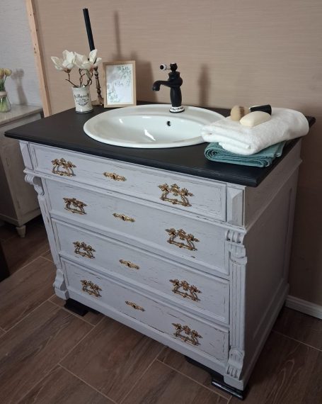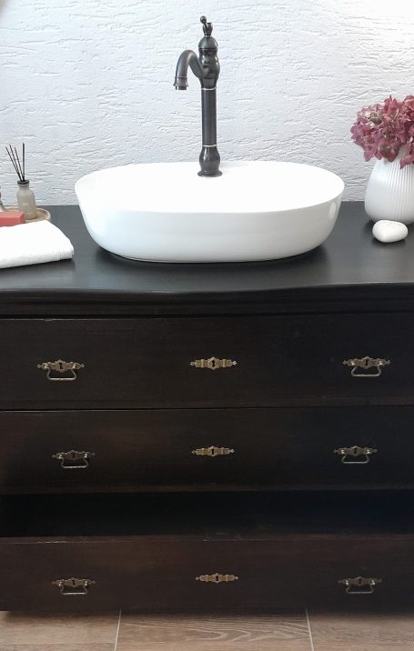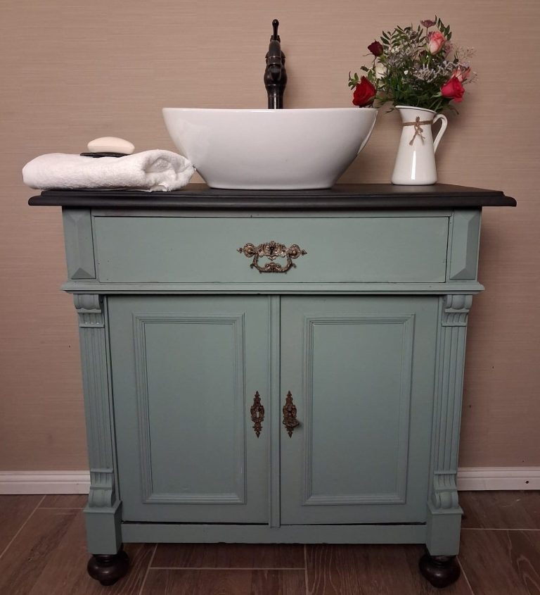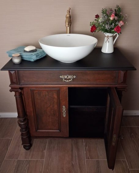 Wer ein besonders nostalgisches Möbelstück als Waschtisch für sein Badezimmer sucht, hat hiermit eine Interessante Alternative gefunden.